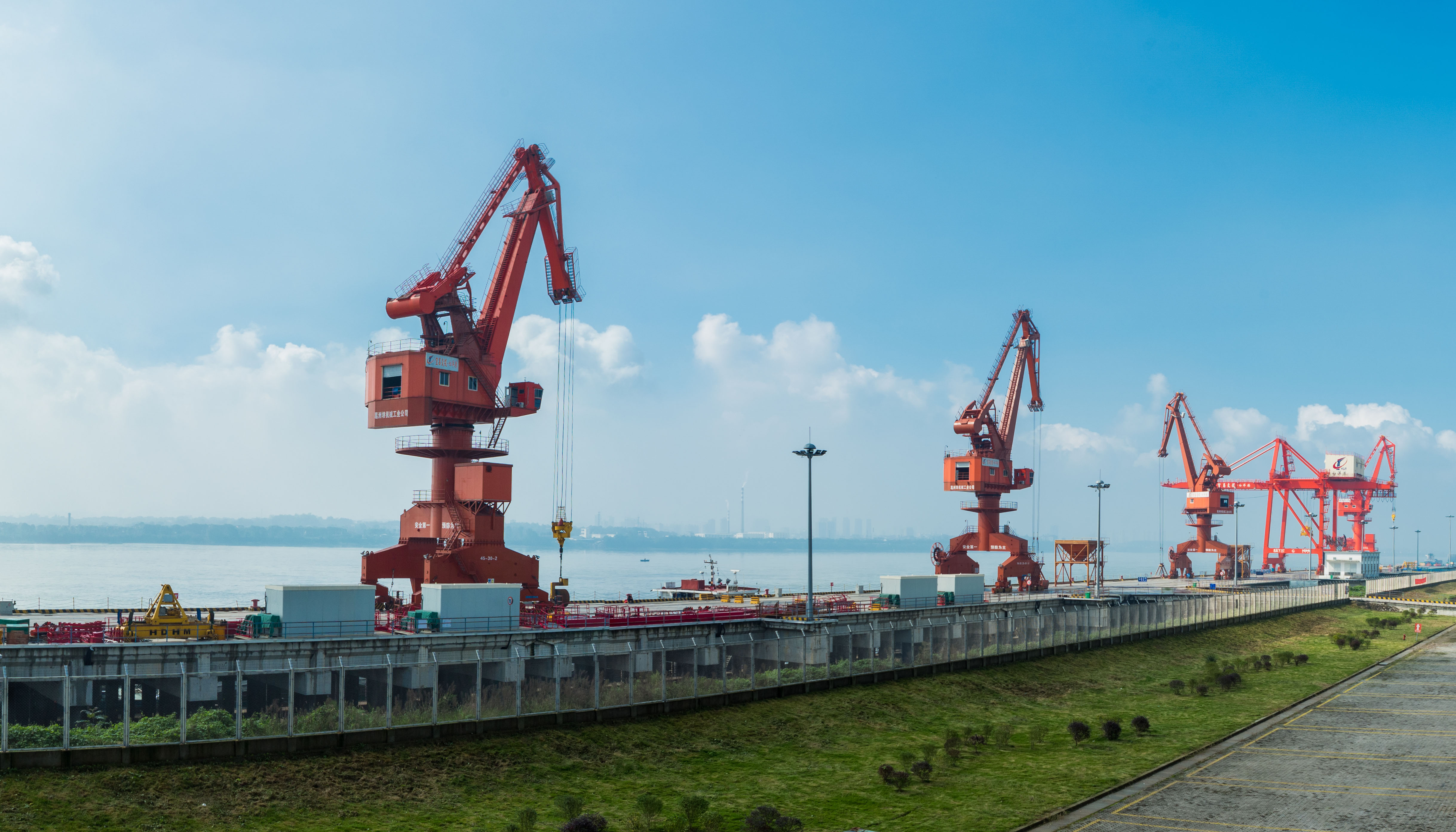 宜昌白洋港區(qū)碼頭工程。項目擬建泊位24個,利用岸線2500米,陸域面積2平方公里,估算投資80億元,遠(yuǎn)期形成年吞吐能力2500萬噸、100萬標(biāo)箱和40萬輛商品車。其中:一期工程擬建6個3000噸級泊位(水工結(jié)構(gòu)兼顧5000噸級),使用岸線624米,陸域面積516畝,概算投資8.18億元。項目2012年10月開工建設(shè)。